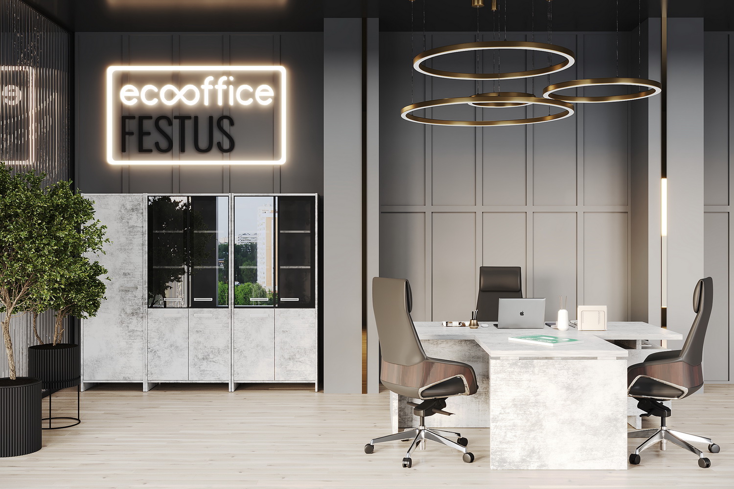 Современный кабинет в трех эксклюзивных цветах: Орех Пацифик Табак, Древесина Графит и Хромикс Белый