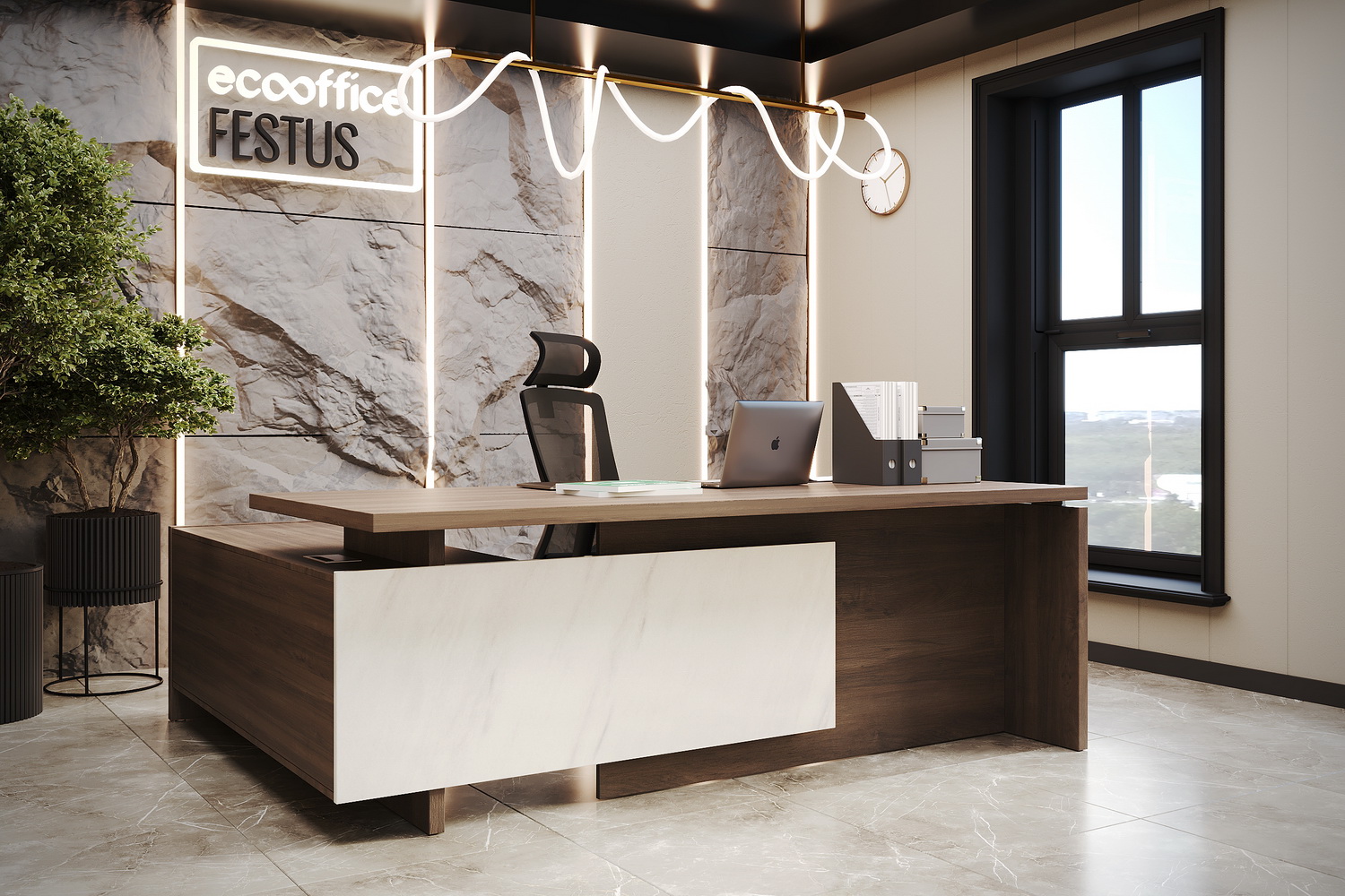 Кабинет руководителя FESTUS Орех Пацифик Табак / Мрамор Леванто белый